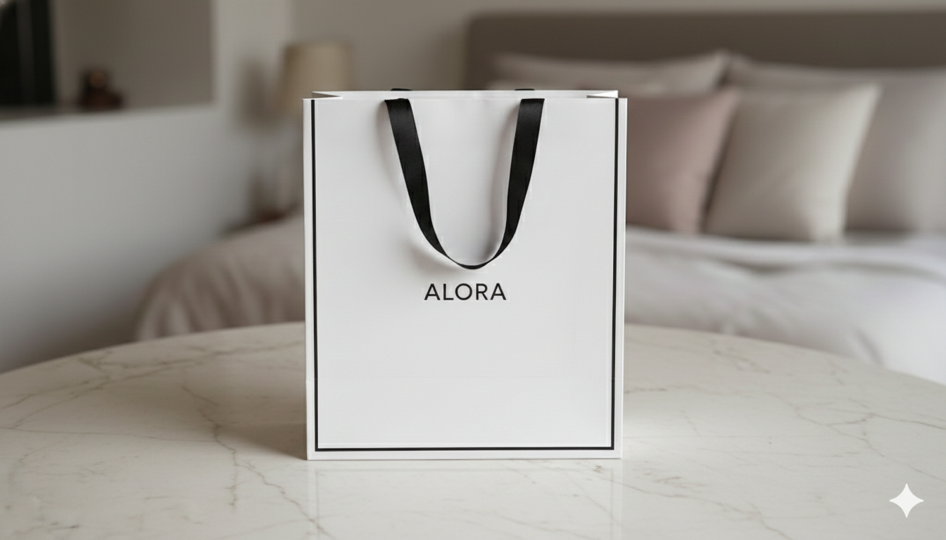 Our packaging is thoughtfully designed to embody the Alora identity—balancing elegance,